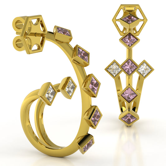 The Mingled Princesses Earrings - Double Twins - Medium Size - 18K / Platinum